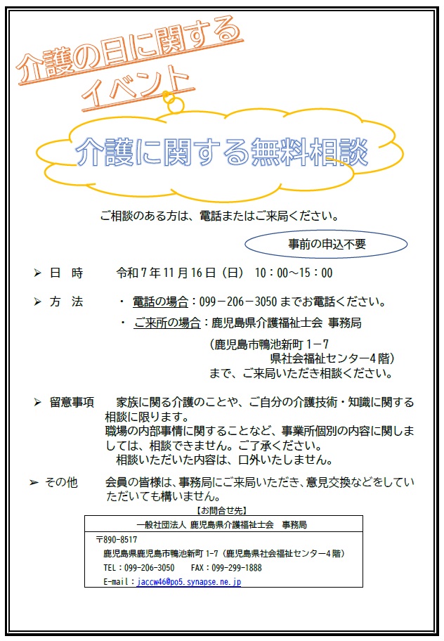 - 住 所 鹿児島市鴨池新町1-7(県社会福祉センター4階)
