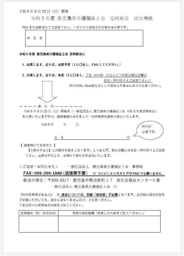 令和5年度 定時総会出欠用紙
